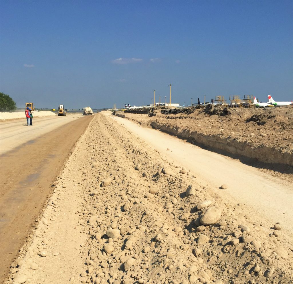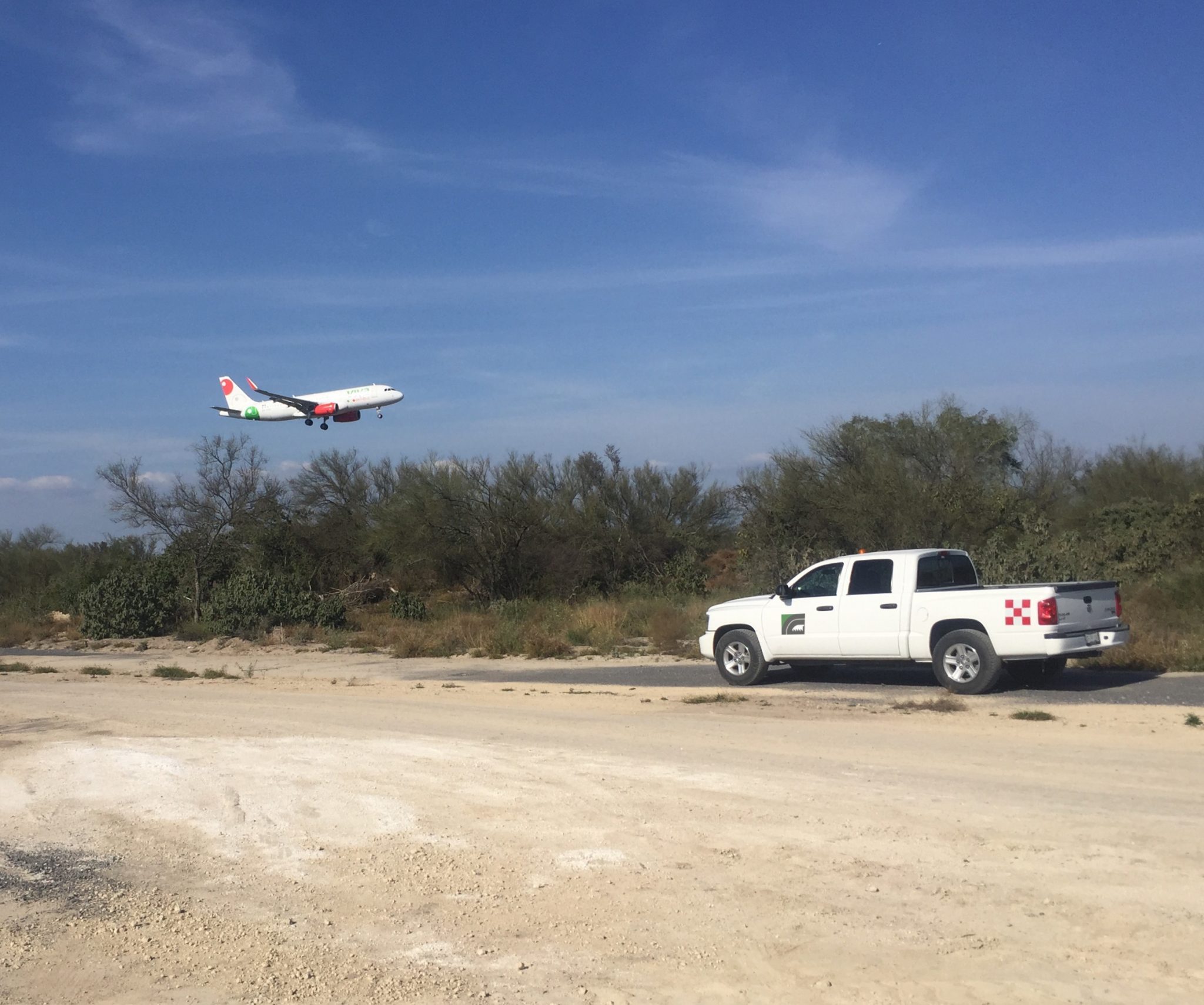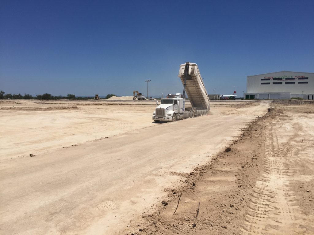 Trabajos de desmonte 72,500 m2, excavaciones 50,300 m3 y movimientos de tierra en el Aeropuerto Internacional Mariano Escobedo para formación de plataforma pernocta y calles de rodaje.